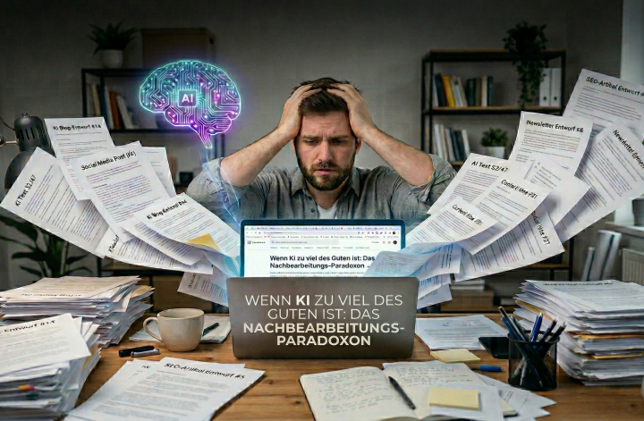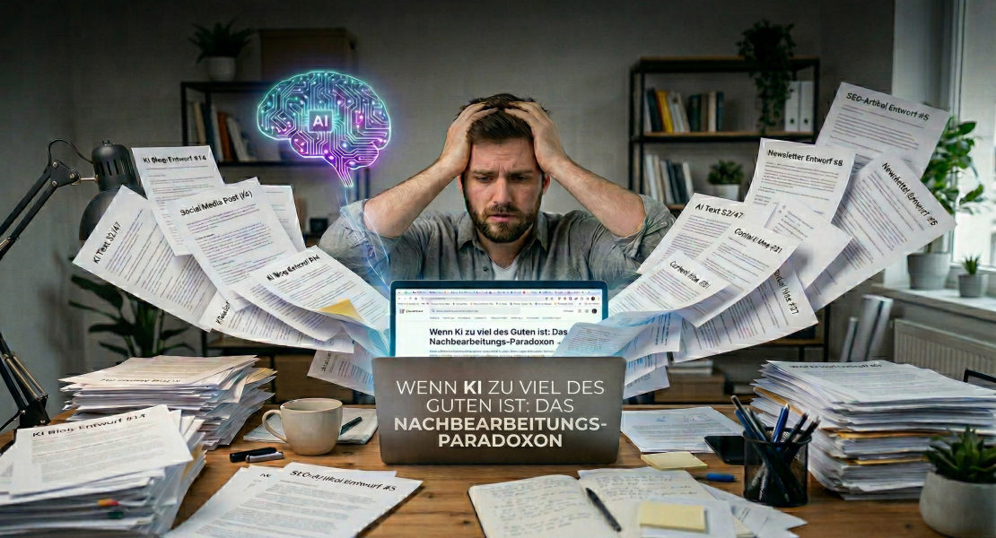 Letzte Woche saß ich vor meinem Bildschirm und starrte auf 47 offene Tabs. Jeder einzelne gefüllt mit KI-generiertem Content. Blog-Entwürfe, Social-Media-Posts, Newsletter-Texte – alles auf einmal erstellt, weil es ja so schnell geht. Und dann traf mich die Erkenntnis wie ein Schlag: Ich hatte ein Monster erschaffen.