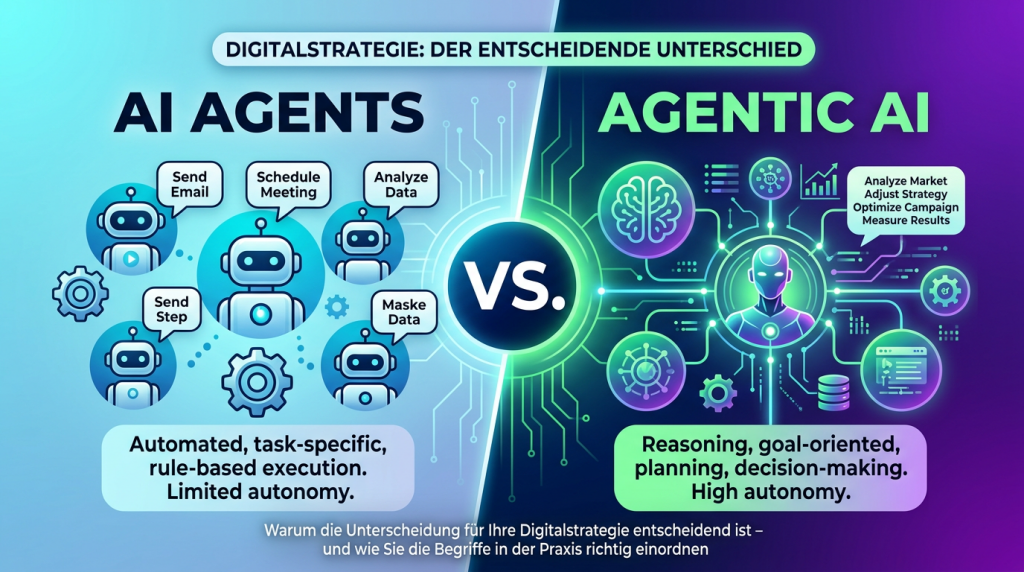 Kaum ein Begriffspaar in der aktuellen KI-Debatte sorgt für mehr Verwirrung als »AI Agents« und »Agentic AI«. Beide Begriffe klingen ähnlich, beide versprechen Automatisierung – doch sie beschreiben fundamental unterschiedliche Ansätze. Wer den Unterschied nicht versteht, riskiert Fehlentscheidungen bei Technologieauswahl, Budgetplanung und Organisationsdesign.